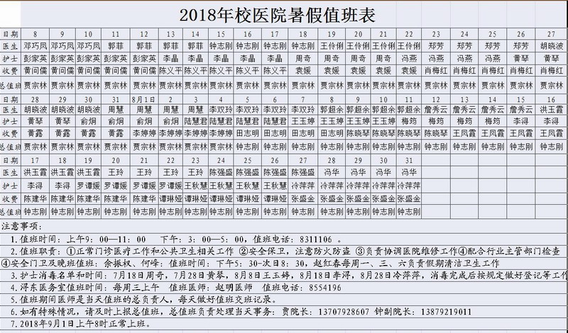 2018年校医院暑假值班表