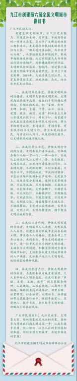 九江市创建全国第六届文明城市倡议书