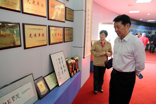 10月19日上午,教育部临床医学专业认证专家组在九江市副市长廖奇志和我校党委书记郑翔、校长甘筱青等领导及相关人员的陪同下参观了我校校史展览。