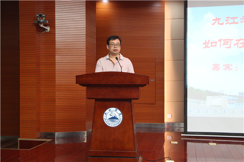 5月30日下午,为迎接九江市双创活动周,为我校第五届“互联网+”大学生创新创业大赛决赛预热。由学工处、团委主办的第二期博士讲堂开展创新创业报告会,第四届中国“互联网+”大学生创新创业大赛国赛评委、校友詹朋朋博士作了题为“如何在创业路演与赛事中脱颖而出”的精彩报告。参加“互联网+”大赛的学生创业团队200余人聆听了报告,报告会由团委书记闫来英主持。