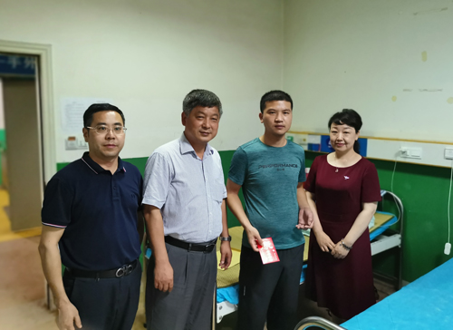 夏副校长亲切询问了徐东华目前的伤势及恢复情况,并赞赏徐东华浴血擒凶的英勇壮举,是现代民警的楷模,也是九江学院优秀校友的杰出代表。在我国传统佳节端午节之际,夏副校长代表学校向徐东华校友送上慰问金和营养品,并希望他在东方手足外科医院理疗之际能进一步的好转,早日康复。