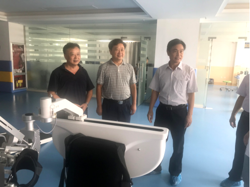 在卫健委桑主任和邵院长陪同下,杨副校长一行参观检查了康复教学医院临床科室、学生食堂及学生宿舍等学习与生活设施准备情况。