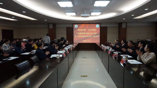 11月7日至8日,2019“白鹿·嵩阳书院文化之旅”在郑州大学举行,校党委副书记魏立平率我校师生共14人赴郑州大学参加了文化交流活动。郑州大学党委副书记贾少鑫、副校长赵明皞热情接待了我校师生。这是2008年书院文化之旅开展以来,九江学院与郑州大学的第十二次书院文化之旅的互访交流活动,今年活动的主题是:书院学规与文化自信。