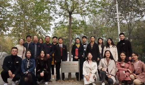 在郑州大学期间,我校师生在郑州大学师生的陪同下,来到了在2011年两校师生共同手植的香樟树下。这棵香樟树位于郑州大学历史学院的教学楼前,被赋予了“承载白鹿的灵秀,守望嵩阳的博大”的深沉又美好愿望,是两校师生友好往来的见证。大家在香樟树下合影留念。