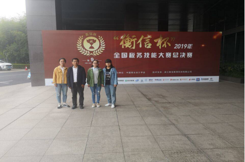 2019年“衡信杯”全国税务技能大赛总决赛于11月13—14日在浙江杭州成功举办。在指导老师会计学院副院长蔡报纯、彭静老师带领下,由会计A1715班谢芬、会计A1717卓越班符凯琪、熊紫薇3名同学组成的九江学院代表队不负重望,最终以394.521总成绩获得本科组团体总分第二名,荣获本次大赛团体一等奖。同时,熊紫薇同学获得税务公务员岗位个人二等奖、符凯琪获得税务主管岗位个人三等奖、谢芬获得办税员岗位个人三等奖,另外3位同学还分别获得了“衡信教育有限公司”的两年免试入职资格。为学校和学院争得了荣誉。