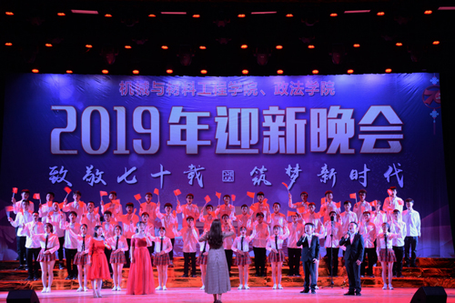 11月2日晚,政法学院与机材学院在我校大礼堂联合举办“致敬七十载,筑梦新时代”主题迎新文艺晚会。校党委副书记魏立平,副校长纪岗昌,副校长陈小林到场观看,学生处、校团委相关负责人和政法学院、机材学院党政领导、教职工代表及全体2019级新生一同观看晚会。