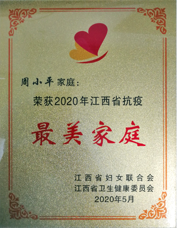 近期,江西省妇女联合会和江西省卫生健康委共同举办“战疫情 有我家”2020年江西省抗疫最美家庭评选活动,活动揭晓了200户“江西省抗疫最美家庭”,附属医院麻醉科援鄂医生周小平家庭荣列其中。