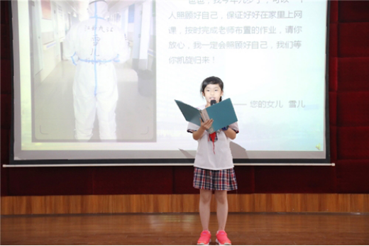 结合本届中国医师节“弘扬抗疫精神,护佑人民健康”的主题,大会在抗疫医师家属代表刘友饶女儿(9岁)的动情讲述中正式开场,她表达了一个女儿在爸爸参加抗疫支援工作后的担忧和个人成长,也让她更加理解医生这个平凡岗位的伟大。演讲完后她给自己的爸爸送上鲜花,并向爸爸和医务工作者们致敬。