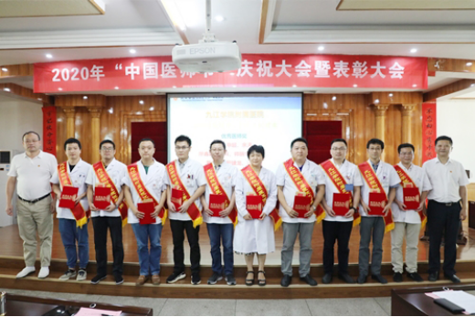 胡志坚宣读了《九江学院附属医院“第三届中国医师节”获奖及表彰的通知》。结合医师节主题与医院临床工作指标,本次共设置医疗安全优秀科室奖、临床合理用药奖、临床路径管理奖等,共27个临床医技科室荣获集体奖;评选出优秀医师奖、合理用药优秀医师奖、病案首页填写质量奖、医师“猫头鹰”奖、“三派三服务” 优秀工作者奖等,共计146人。大会还为荣获“江西省最美抗疫医师”称号的呼吸一科童建林主任颁发了获奖证书。