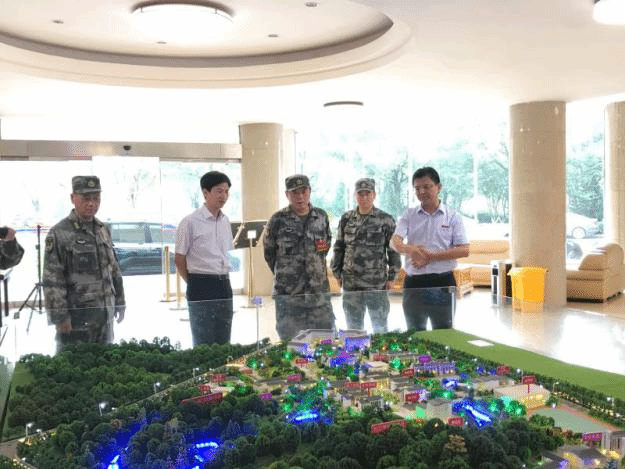在详细了解了我校发展状况以及学校近期发展目标之后,傅勇将军又兴致勃勃地参观了我校新校区沙盘模型,还听取了学校积极做好防汛抗洪工作有关情况汇报。
