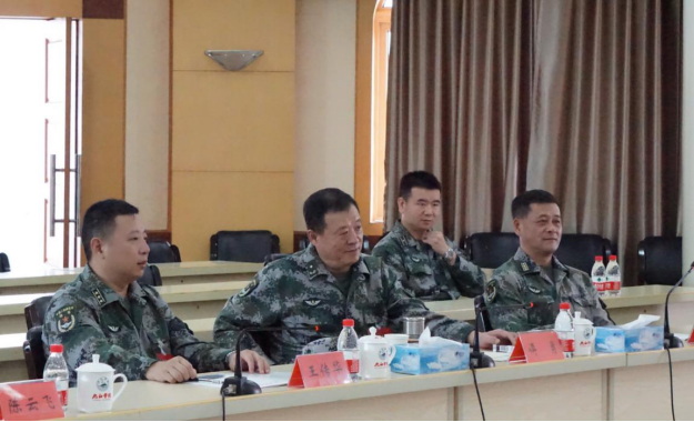 在校一号会议室座谈会上,校长刘晓东向傅勇一行介绍了学校近年来的建设发展情况。副校长查振华、党委委员冯健共同回忆起当时为驻校的部队官兵们做好后勤服务保障的场景。