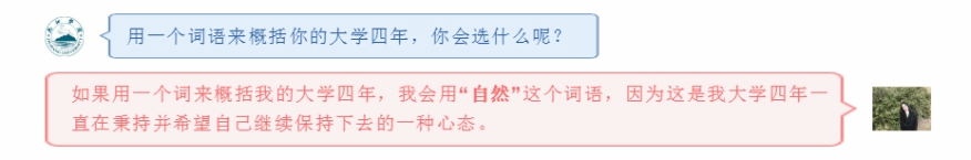 邱淼洋大学四年的学习可以用“按部就班”来形容,课余时间参加了很多竞赛,锻炼了不少。她加入过国旗班,收获不少友谊和善意。周末兼职让她体会到赚钱的不易,也让自己更珍惜所拥有的一切。室友之间的融洽相处给大学生活增添了一笔“彩虹色”。总而言之,心怀感恩,她感谢收获到的所有善意。