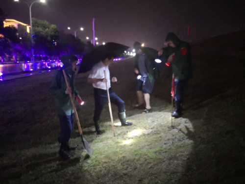 7月11日晚,受强对流天气影响,风雨大作,雷电交加。校长刘晓东来到赛城湖堤坝我校防汛值守堤段,检查指导防汛工作。学校党院办负责同志杨杰陪同检查。