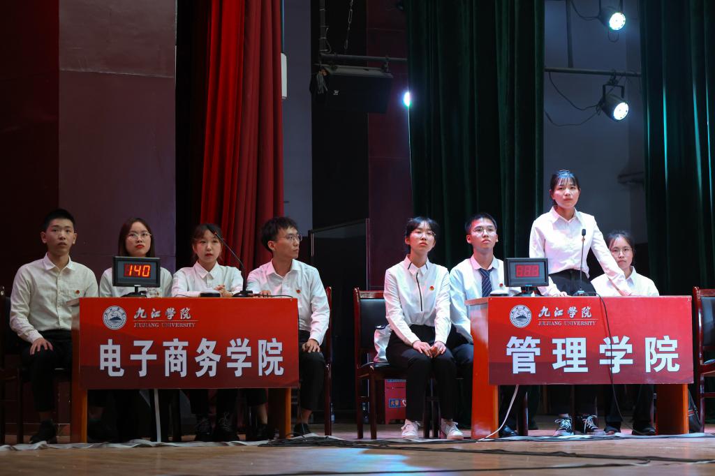 本次比赛共有22个学院代表队进入了决赛。通过抽签分为A、B两组依次进行必答题、抢答题、风险题三个环节的比拼。比赛中,各队参赛选手沉着冷静、争分夺秒、对答如流,在前两个环节均以近满分的成绩通过,充分展示了我校学子深入学习百年党史的成效,以及各代表队昂扬向上的精神风貌。在最后自主选择的风险题中,气氛更加紧张激烈,各学院代表队慢慢拉开了差距。经过激烈的角逐,电子信息工程学院和电子商务学院荣获一等奖。