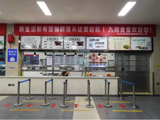 “浓情烹调校园百味喜迎八方学子,奋斗谱写奉献之歌服务四方英才”“质优价廉菜品多 健康饮食牵你我,九院餐厅献真爱 膳食营养美味传”“金秋送爽喜迎八方学子,美食飘香奔赴美好明天!”…… 在各学生食堂悬挂饮食服务中心制作展出的真诚感人话语的横幅让人倍感温馨。
