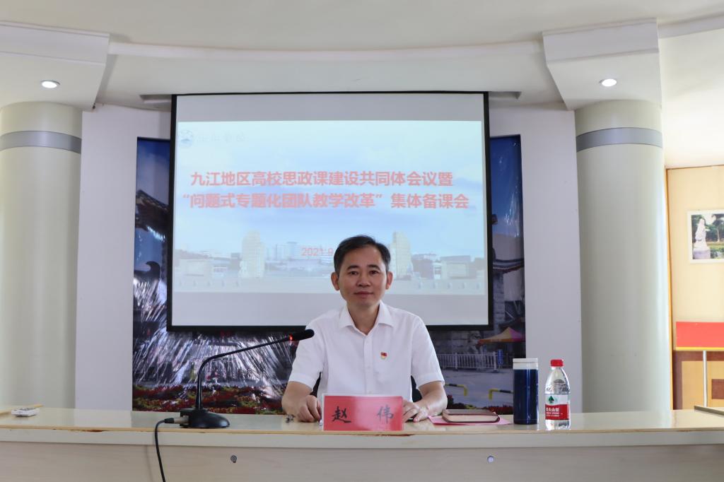 赵伟在会上作了热情洋溢的致辞,对省委教育工委宣传部领导和兄弟高校的专家学者的到来表示了热烈的欢迎。赵伟指出,思政课是落实立德树人根本任务的关键课程,九江学院党委一直以来高度重视思想政治理论课建设和马克思主义学院建设,在政策制定、财力投入、人员配备、资源供给等方面为思政课建设提供了大力支持,尤其是党的十八大以来,学校积极贯彻落实党中央各项要求,推动马克思主义学院建设取得长足进展,各方面工作迈上新台阶。赵伟表示,希望九江地区高校思政课建设共同体会议暨“问题式专题化团队教学改革”集体备课会的召开,为九江各高校马院搭建一个良好的交流分享平台,碰撞思想,擦出智慧火花,积极推动思政课问题式专题化团队教学改革和九江地区高校思政课建设共同体,并为我校思想政治理论课建设和马克思主义学院发展积极会诊把脉,畅所欲言,多提宝贵意见。