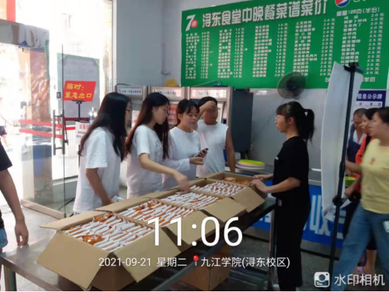 “每次传统节日,学校都会精心准备福利,即便不能回家,也让我感受到了温暖和快乐!”“作为一名大一新生,第一次离家过中秋,看到朋友学校发的月饼还以为我们学校不会发月饼,有点失落,但现在不用担心了,因为我知道,我与九院相遇了,未来四年里,我都会与九院月饼相伴,和九院学子共度佳节,共赏皓月” ……在九江学院微信公众号和九院后勤公众号里一条条温馨留言,感动着每一个九院人,这些留言都源于这几日我校后勤管理处饮食服务中心开展的一场“佳节不忘光盘礼,浓情更惜月饼情”活动。这是学校后勤管理处又一次在我国传统节日为师生发放福利,也再次表明九院后勤干部员工们正用实际行动聚焦立德树人根本任务,用心用情为九院师生办好实事。