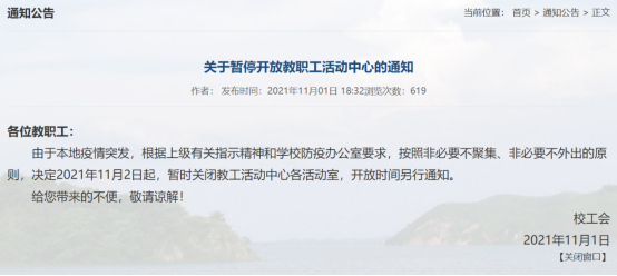 为进一步规范和强化我校疫情防控工作,学校疫情防控工作领导小组办公室、党委宣传部、保卫处、校工会等部门分别发布了《关于做好当前疫情防控工作的提示》《疫情防控的最新提示,请查收!》《疫情防控不可松懈!》《关于加强匡庐苑后门安全管理的通知》《关于暂停开放教职工活动中心的通知》等。