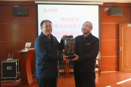 陈小林对邯郸学院赵新生校长一行来校访问表示欢迎,介绍了学校的历史渊源、办学规模、学科专业、服务地方、专业质量提升和校区资源整合等方面的内容,希望两校能进一步加强交流经验,互相促进发展。