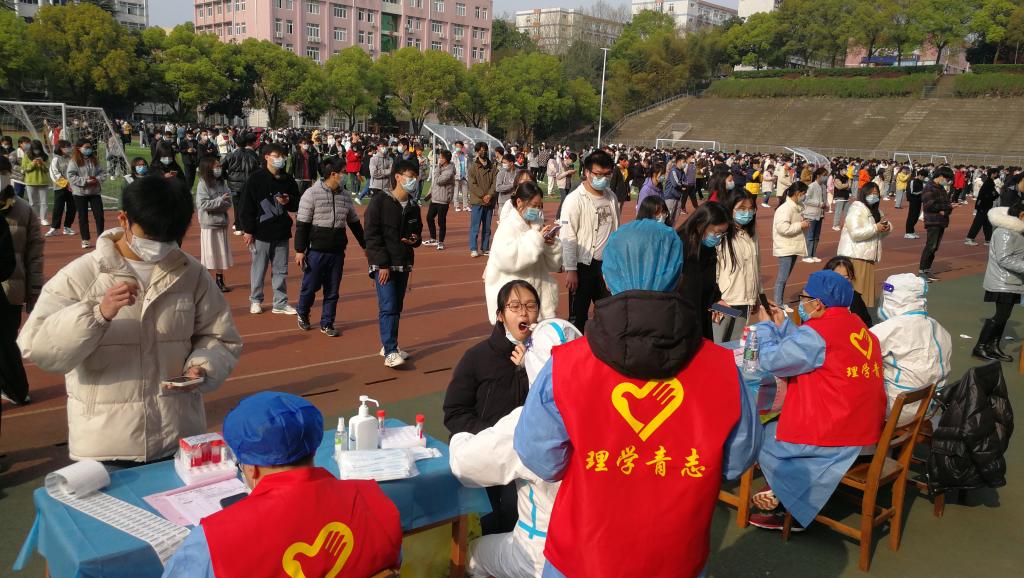 3月15日—3月24日,我校先后在主校区南区田径场、学校三食堂门口和浔东校区图书馆广场设立了三个采集点,投入全体医务人员41名,积极展开全校第一轮全员新冠病毒核酸检测。