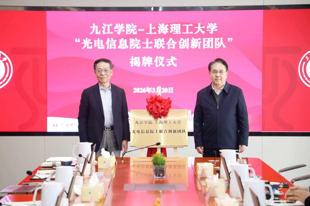 为更好地落实沪赣教育合作精神,进一步推动九江学院与上海理工大学双方交流合作,3月20日,校党委书记李明斌率队赴上海理工大学调研交流,并为双方共建的光电信息院士联合创新团队揭牌。上海理工大学校长朱新远,中国工程院院士、上海理工大学教授庄松林,上海理工大学党委副书记、副校长刘德强及党委(校长)办公室、科技发展研究院、研究生院、地方合作办公室及光电信息与计算机工程学院、材料与化学学院、九江创新研究院等参加会见、调研或座谈。我校党政办、科研处(社会服务办公室)、发展规划与研究生处、校友办等参加活动。