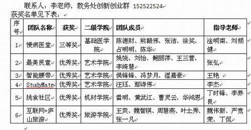 经过精心组织挑选,我校共选拔出八支大学生创业创业团队参加了本次比赛,他们分别是“慢病医堂”团队、“最美民意”团队、“智能腰带”团队、“StudyMate” 团队、“互联网+庐山旅游” 团队、“挑食社区”团队、“新式签到系统”团队和“白鹿洞二手图书交易平台”团队。
