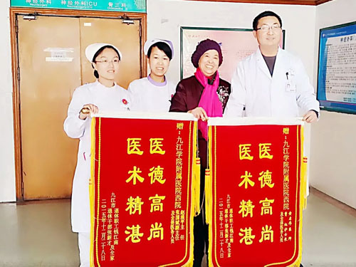 钱阿姨意外的受伤,对患者及家属都是沉痛的打击,经历鬼门关的惊险,同时也切身感受到了临床医学院/附属医院医护人员高超的医术、关怀备至的服务和高度的责任心。在即将出院之际,钱阿姨及全家为表达心中无限的感激,特送来了大红锦旗致谢临床医学院/附属医院神经外科医护人员。