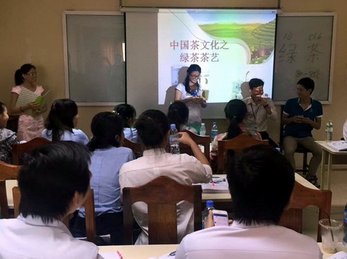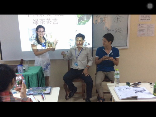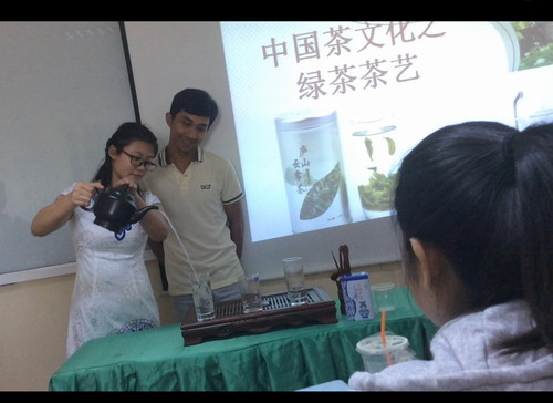 1月8日下午,柬埔寨王家研究院孔子学院金边国际大学汉语中心举行中国绿茶茶艺文化体验活动。