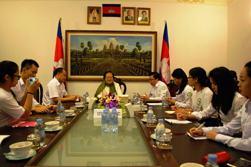1月27日上午,柬埔寨王家研究院孔子学院在王家研究院视频会议室举行2016年新春座谈会,柬埔寨王家研究院院长、柬埔寨王家研究院孔子学院理事长、洪森总理顾问克洛媞达院士阁下(HE Academician KHLOT Thyda),孔子学院院长、柬埔寨参议院顾问谢莫尼勒阁下(HE CHEA Munyrith)、中方院长帅式毅参加座谈会,视频会议系统连通了柬埔寨政府洪森总理办公室。柬埔寨新闻频道(CNC)作了报道。座谈会由谢莫尼勒院长主持。