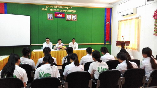 2月24日,柬埔寨王家研究院孔子学院院长谢莫尼勒阁下(H.E.CHEA Munyrith)在吴哥高中校长任诺特(RIN Lot)先生的陪同下,莅临柬埔寨王家研究院孔子学院暹粒省吴哥高中孔子课堂指导工作并和全体公派汉语教师及志愿者教师进行座谈。