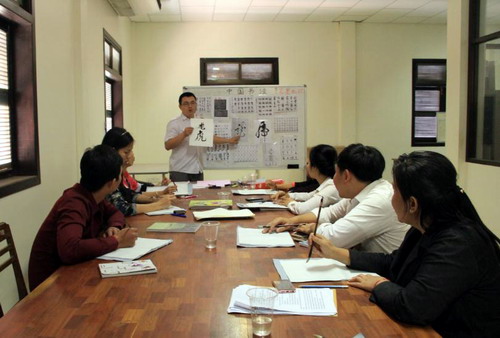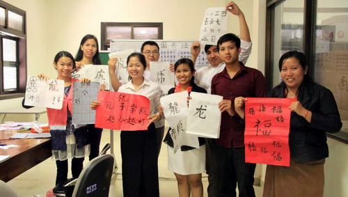 2月29日,柬埔寨王家研究院孔子学院暹粒省政府官员班举办“最美中华”系列活动之“中国书法”活动。此次活动的主题为“书之美,书之韵,书之神”。