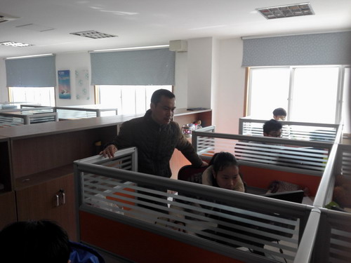 在网萌公司徐飞、戴耀椿总监的陪同下,调研组参观了公司实训办公场地及职工宿舍,并向网萌公司传达了学院领导对实习基地建设的关心和肯定。