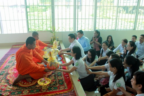 在孔子学院工作的汉语教师志愿者代表参加了仪式,感受到了柬埔寨是一个佛教国家,佛教对柬埔寨人的生活、工作都有着重要的影响,体会到了柬埔寨人朴素的信仰和单纯的愿望。