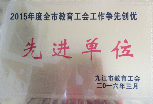 4月1日,九江市教育工会七届八次委员(扩大)会议召开,大会授予我校工会“2015年度全市教育工会工作争先创优---先进单位”光荣称号。
