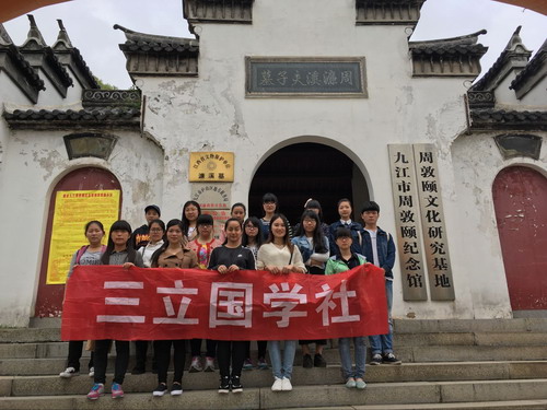 为弘扬先贤周敦颐理学文化思想,  恰逢纪念周敦颐999周年活动,外国语学院三立国学社同九江市文物局与九江市濂溪文化研究会等单位于2016年4月8日至10日在周敦颐墓共同参与纪念活动。