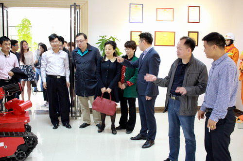 随后,调研小组来到江西瑞斯科救援科技有限公司,董事长刘剑、总经理王青泉等带领大家参观了公司研发的机器人、无人机及消防装备等,并在公司会议室举行了座谈会。会上,科研处副处长宋士华主持座谈会并介绍了此行的目的,强调旨在为创业师生和校友企业之间牵线搭桥,希望创业成功的校友能够为园区的小微企业初期遇到的瓶颈问题提供指导与帮助,同时校友企业加强与学校的联系与合作,实现双赢。公司负责人介绍了产品研发、技术需求等情况,希望在三维图像研发、大数据开发、消防培训等方面能够得到九江学院的支持与帮助,与学校开展深入合作。学生企业九江馨媒影视有限公司法人、文传学院大三学生胡守振等希望得到学兄企业的关心帮助,促使自己刚起步的企业发展壮大。