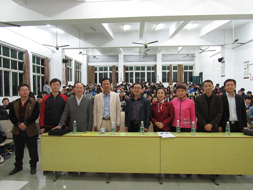 4月24号晚,基础医学院优秀校友钟吉富教授受邀于华文楼介二举办“与信仰对话”专题讲座。基础医学院院长车向新、党委书记余朝阳、副院长郑美蓉、全体辅导员、班主任以及各班学生代表聆听了此次讲座。