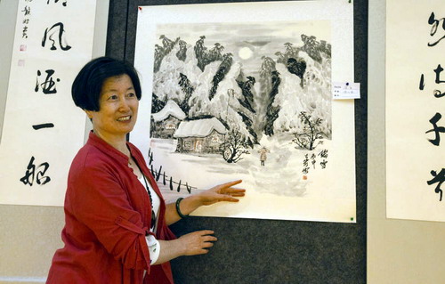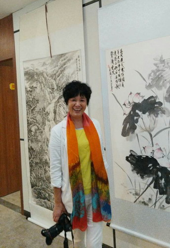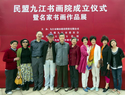 上午九点三十分,老盟员与来自全市各支部的盟员同志一起在“水岸莲花”销售中心见证了民盟九江书画院成立,并参观了名家书画作品展。在书画展厅中,名家们一幅幅直抒胸臆的书写,一帧帧异彩纷呈的画卷吸引老盟员们驻足观看。大家时而交换心得,时而用相机记录精彩瞬,徜徉在书法艺术的海洋里时,心中充满着激动和喜悦,体验难以用语言来表达的感觉和快乐。