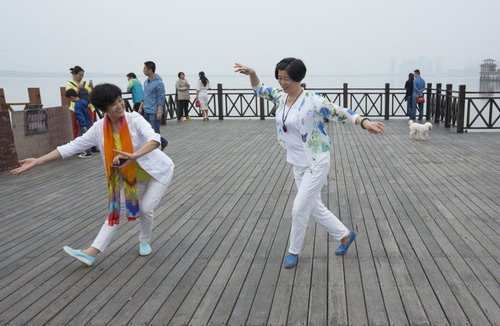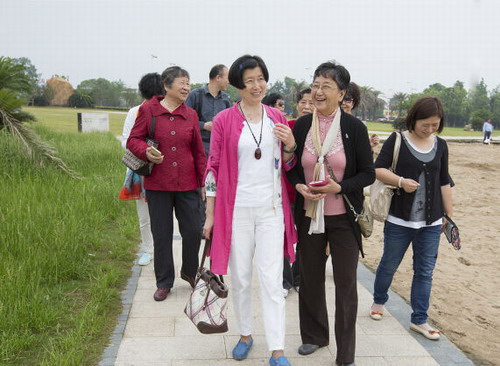 观礼结束后,支部盟员们一起到八里湖海韵沙滩游览。在海韵沙滩,海天一色的美景令老盟员们叹为观止,清新的空气也让人心旷神怡,此情此景下,徐军英和余翠俐两位盟员献上一支《吉祥颂》西藏舞,祝支部盟员吉祥健康,平安快乐!并为此次支部活动画上一个圆满的句号。