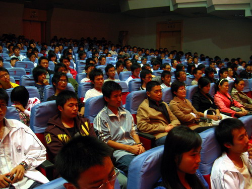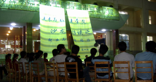 在接下来的日子里,“创业与成才”沙龙访谈就像襁褓中的婴儿,虽然弱小,但受到大家的精心呵护。条件虽然艰苦,但团委负责人带着沙龙访谈节目组成员万众一心,众志成城,排除万难,脚踏实地,一步一步地艰难地前行。没有合适场地,他们就在望庐楼前摆起凳子;没有先进设备,他们就充分利用学院原有的老旧音响、话筒;没有合格主持人,他们就自己相互学习自己培养……,困难看似一座座冰山,但在执着的土建学院人面前,纷纷融化,化作一条条坦途。