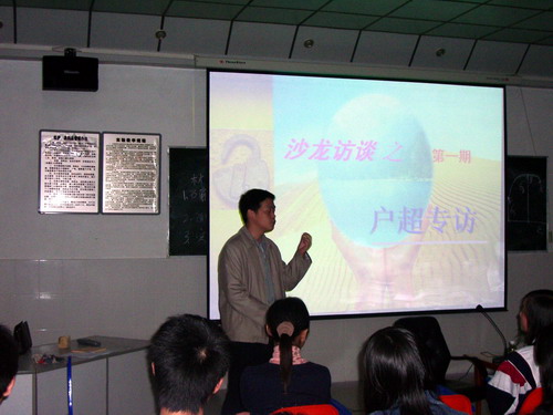 2006年4月25日晚7:00,土建学院“创业与成才”沙龙访谈第一期节目在土建学院实验楼二楼准备室正式推出,节目主题为“艰辛的创业路”——九江九鼎数码科技有限公司经理户超专访。副院长赵兵代表学院党委行政到场祝贺,并对沙龙访谈节目提出了“办成一个同学们眺望距离自己最近风景的窗口、一个多方位学习与交流的平台、一个战士同学们自我风采之舞台”的殷切希望,同时希望同学们敞开心扉,认真思考,从小人物,平凡事上悟出人生大道理,从而更好地树立人生目标,并向着目标努力冲刺,并祝愿沙龙访谈节目能办成土建学院经久不衰的品牌栏目。