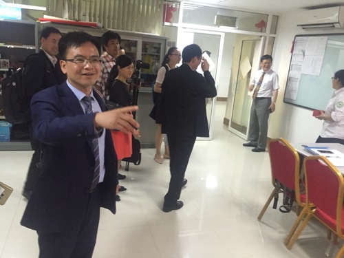 6月9日下午,中国贵州省贵州师范学院代表李存雄校长等一行到访柬埔寨王家研究院孔子学院亚欧大学(中文系)。亚欧大学校长谢索皮博士(Dr. CHEA Sopheap)、副校长孙色塔先生(Mr. SUN Setha)在12楼会议室会见代表团一行,亚欧大学各部门领导、中文系全体教师参加了此次会议。