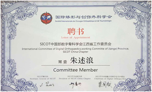 近日,经国际矫形与创伤学会(SICOT)中国部和SICOT中国部数字骨科学会的批准,SICOT中国部数字骨科学会江西省工作委员会暨江西骨科3D-CLUB成立大会在南昌举行。大会选举出了SICOT中国部数字骨科学会江西省工作委员会成员,临床医学院/附属医院骨三科朱述浪主任当选委员会常委。