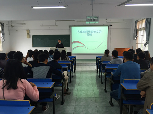 随后,市场营销教研室谭志合副教授为同学们做了《毕业论文如何选题》的专题讲座。谭老师从选题的“三宜”、“三点”出发并以实例说明选题可行性,引导学生选择论文题目。最后,师生间就关于如何选题的进行了积极探讨。