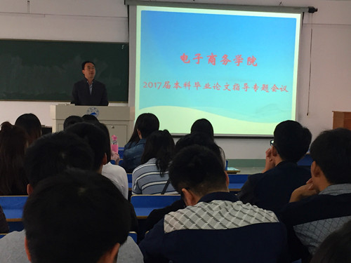 为了进一步推进本科论文指导工作,提高本科论文质量,电子商务学院于10月14日在竞秀楼507召开2017届本科毕业论文指导专题会。会议由郑孝庭副院长主持,各指导老师和电子商务学院本科毕业班全体同学参加。