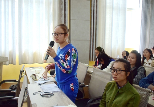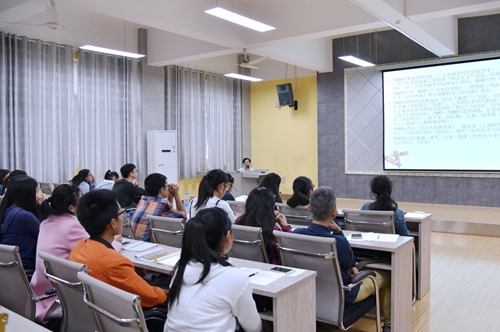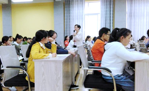 当日下午,由九江学院文学与传媒学院教师吴霞,给培训班带来了以“现代写作基础技术”为题的讲座。首先,吴霞老师围绕“写作的意义”提问,以交流互动的形式开始了这场讲座。整场讲座围绕观察与体验、分析和结合及想象与联系三个方面,谈到了传统、现代常用写作技法、培养观察能力、想象力,提高写作能力、阅读能力等多个关于现代写作的话题。吴霞老师还为大家推荐了一些中外作家,如李枫、萧凯茵、卡夫卡等,作品《奥德赛》、《等待戈多》等。