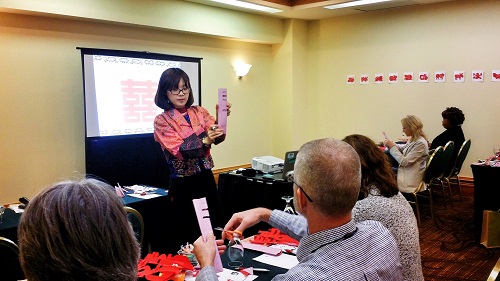 当地时间10月26日,美国第二十届佐治亚州高等教育系统工作年会在美丽的萨凡纳市举行。此次会议设有经验分享、项目规划、文化体验、高等教育机构新趋势研讨等多个不同环节,旨在为各高校教育官员搭建一个沟通交流的平台,进一步促进高等教育机构间的互动与交流发展。萨凡纳州立大学孔子学院钟佳艺老师应邀为本次参会的教育官员做了一场展示中国民间剪纸艺术,体验中国优秀传统文化的专题活动。