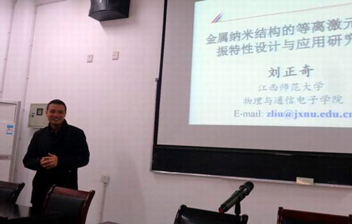 江西师大刘正奇博士作《金属纳米结构的等离激元共振特性设计与应用研究》报告