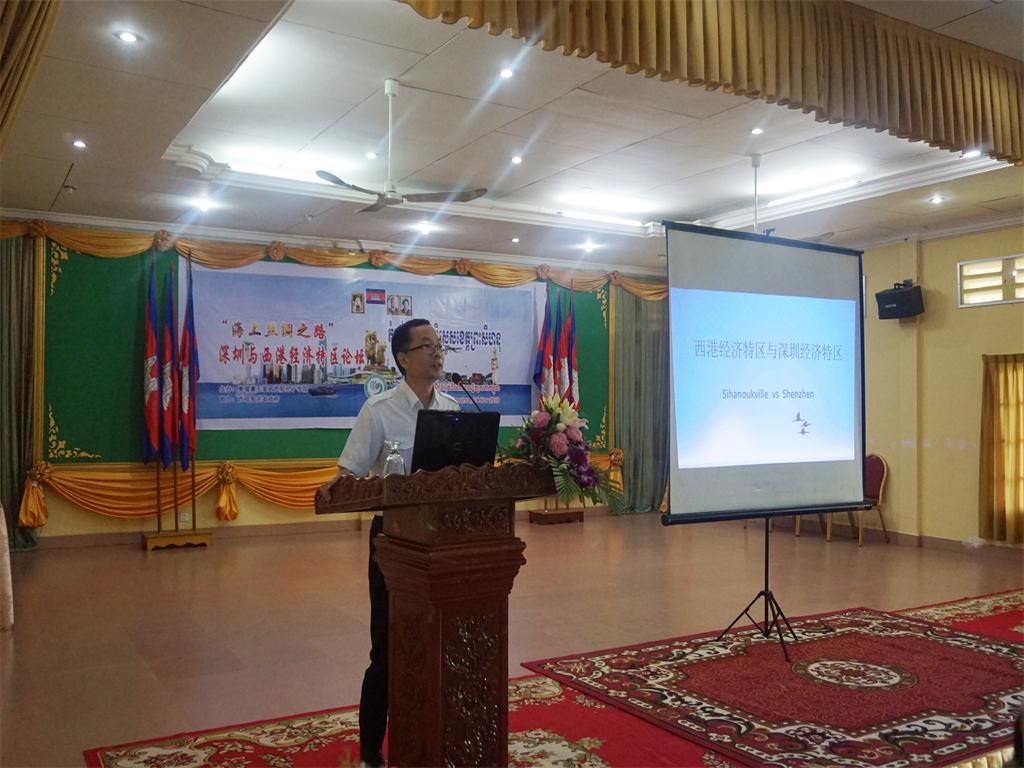夏修龙院长作了“深圳经济特区和西哈努克经济特区”的主题报告,他从西港经济特区和深圳经济特区经济发展的现状、速度、经验、面临的问题和发展方向等几方面入手,分析比较了西港经济特区和深圳经济特区的关系。他指出,中柬两国互相学习互相帮助,通过中柬人民的共同努力,中柬两国经济必将蒸蒸日上,再创佳绩。
