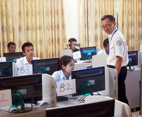 考试于4日上午8点正式开始,下午5点15分顺利结束。柬埔寨孔子学院全体工作人员为此次考试进行了充分的准备,在考试前期,对担任主考和监考的志愿者教师进行了培训。考试中严格按照考试程序进行,有效地保证了本次考试的顺利进行。孔子学院为参加本次考试的全体考生营造了一个公平、舒适的考试氛围和井然有序的考场环境。